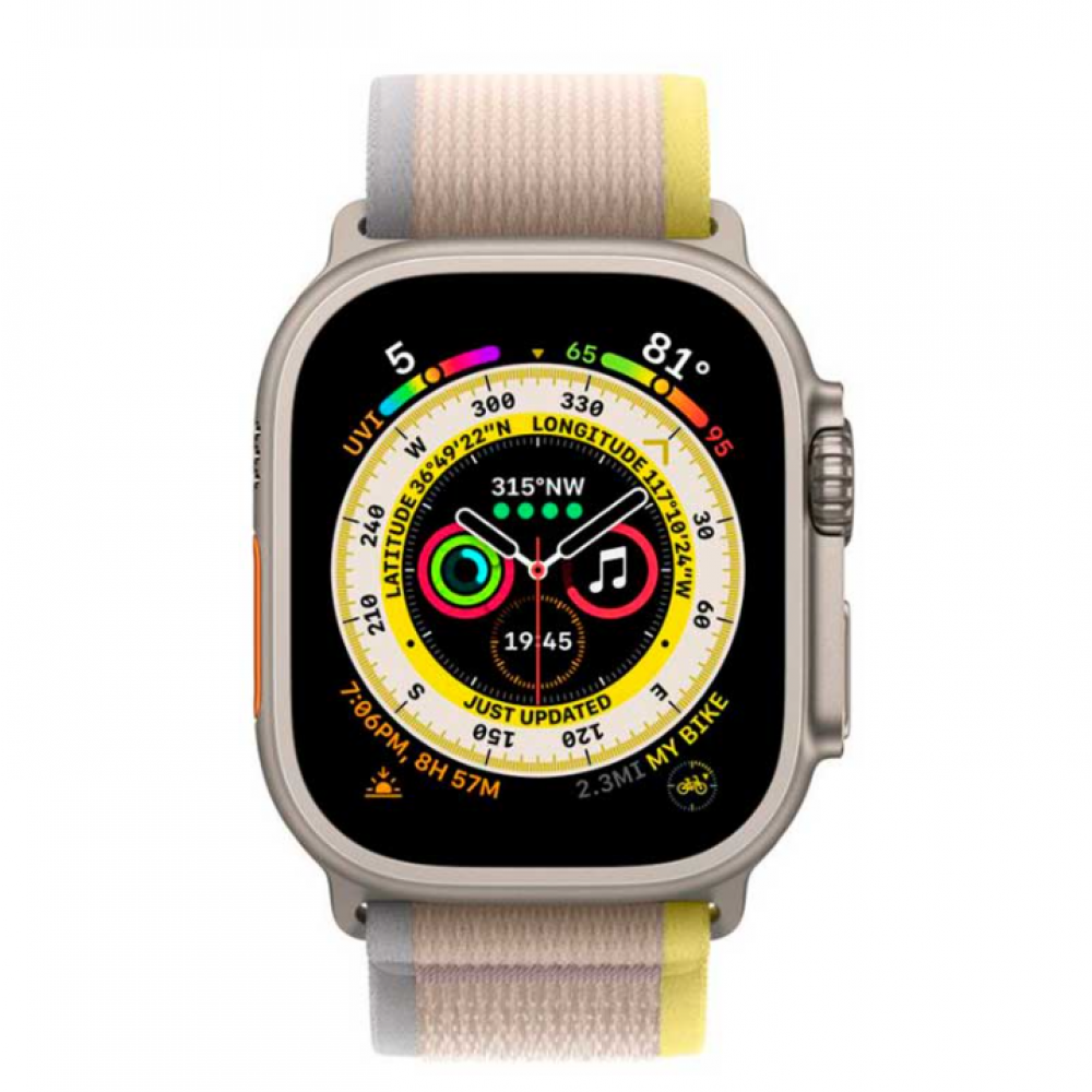 Теги: Apple Watch Ultra 49mm Titanium Case with Yellow/Beige Trail Loop (MNHK3)